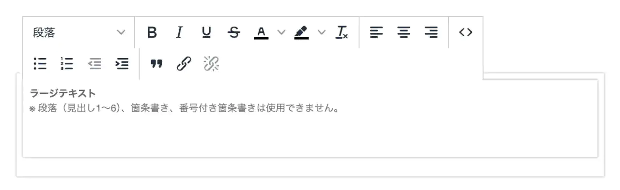 いずれもリッチテキスト形式で入力できるため、ラージテキストは「より強調したい・目立たせたい」などの用途にご利用ください。