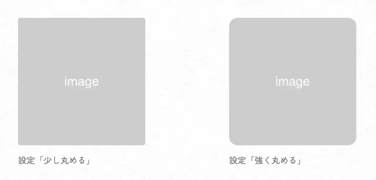 画像の角丸加工は、「なし」「少し丸める」「強く丸める」の中から選択可能です。