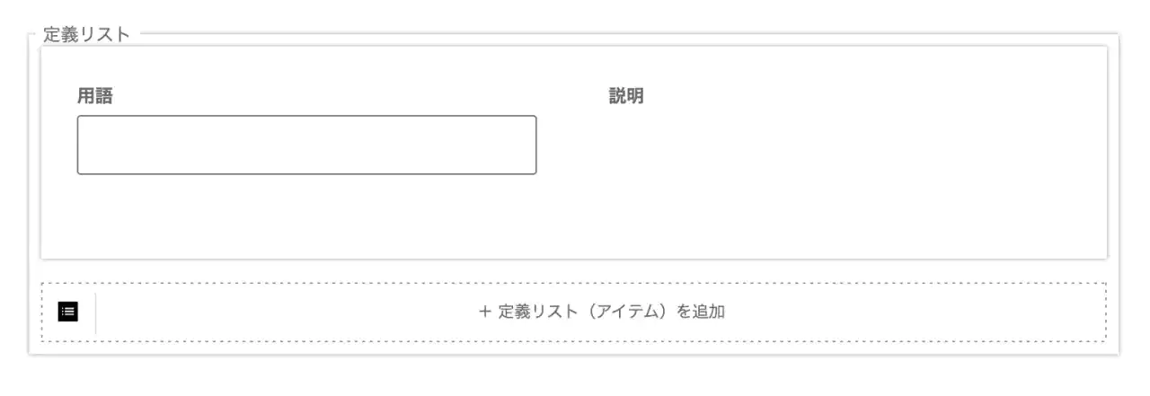 ウェブページでは定義リストブロックが利用可能です。
