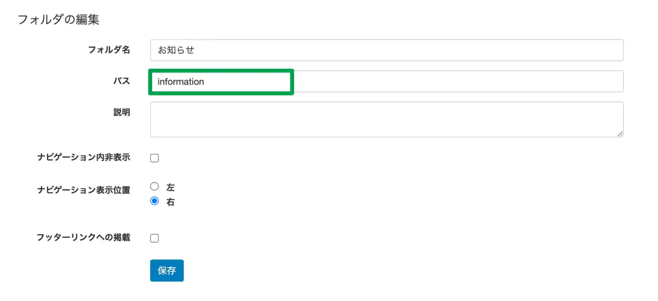 設定のポイントは、お知らせの一覧が表示されるディレクトリ(パス)と、フォルダに設定するパスを一致させることになります。