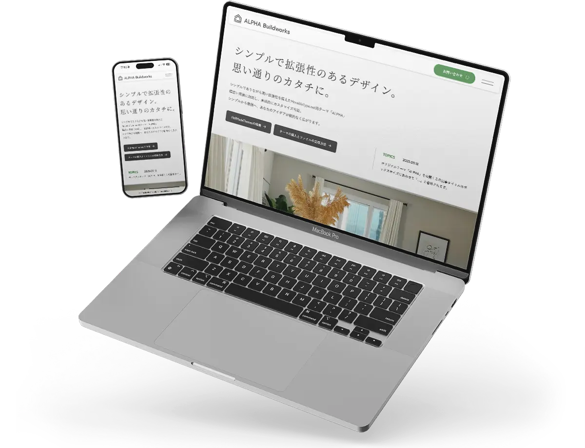 HalfMadeThemesシリーズの第1弾としてリリースされたTYPE: ALPHAは、一般的なコーポレートサイトや、製品・サービスを紹介するウェブサイトでの利用に最適なデザインテーマです。