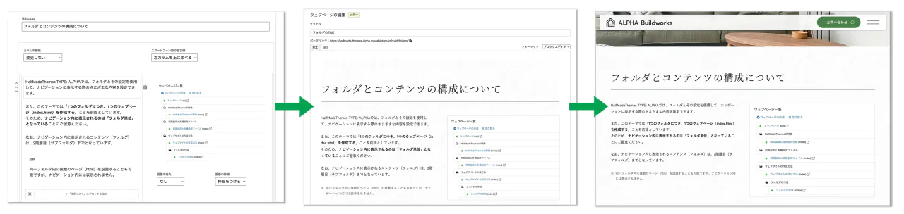 HalfMadeThemesで用意しているブロックエディタには、すべてエディタCSSが反映されているので、管理画面内でもデザインが反映された状態を確認できます。